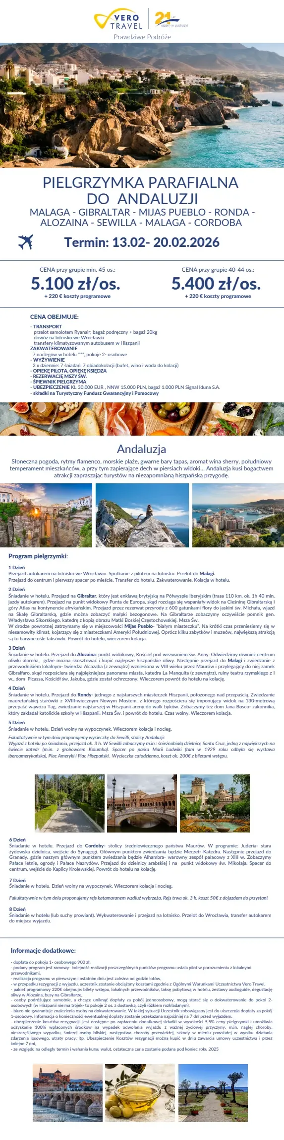 PIELGRZYMKA PARAFIALNA DO ANDALUZJI — PROGRAM